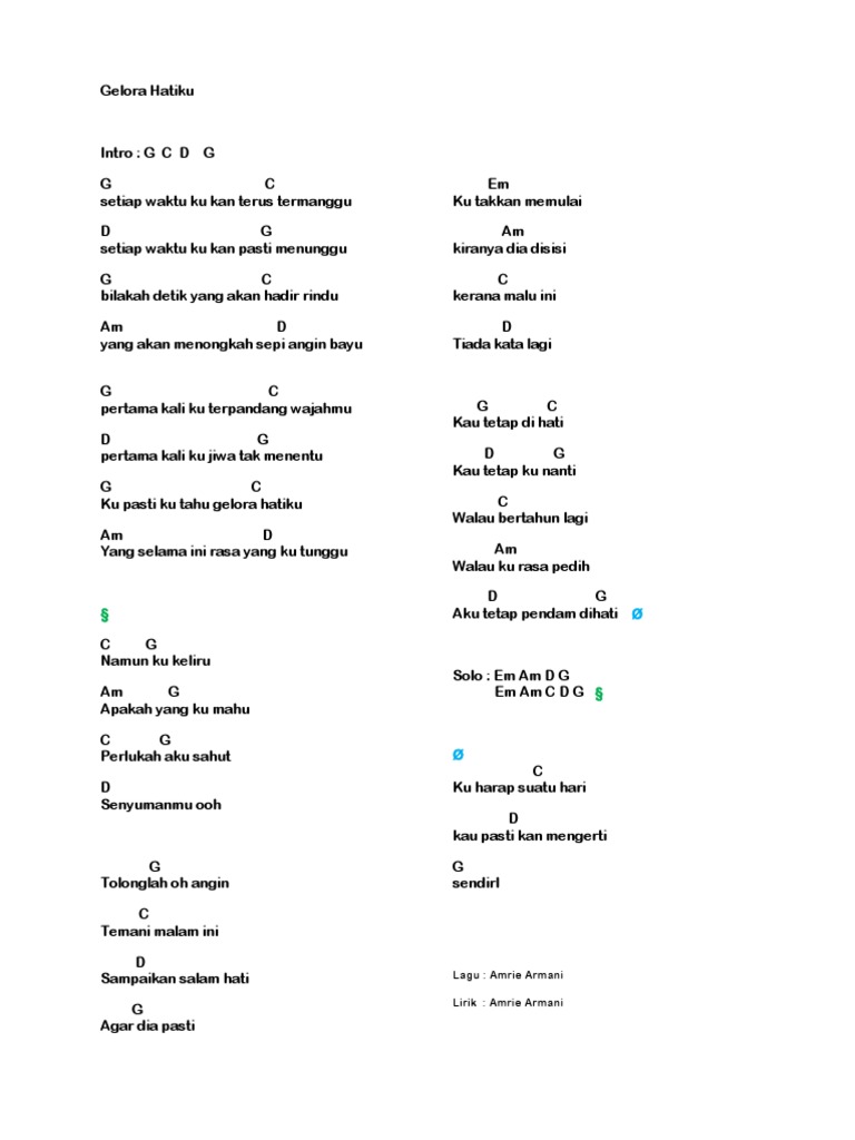 intro c g c d g g engkau yang sedang em patah hati am menangislah dan jangan d ragu ungkapkan bm betapa pedih hati em yang tersakiti am racun yang membunuhmu. Am d tak mampu menahan pedih yang tak ada habisnya. G em engkau yang sedang patah hati am d menangislah dan jangan ragu ungkapkan bm em betapa pedih hati yang tersakiti am d. Just enter one or more chord symbols separated by commas into the search box and hit go. Dm am kau menghilang entah ke mana dm am tinggalkan ku merana.